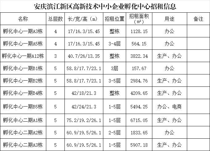 项目一:安庆滨江新区高新技术中小企业孵化中心