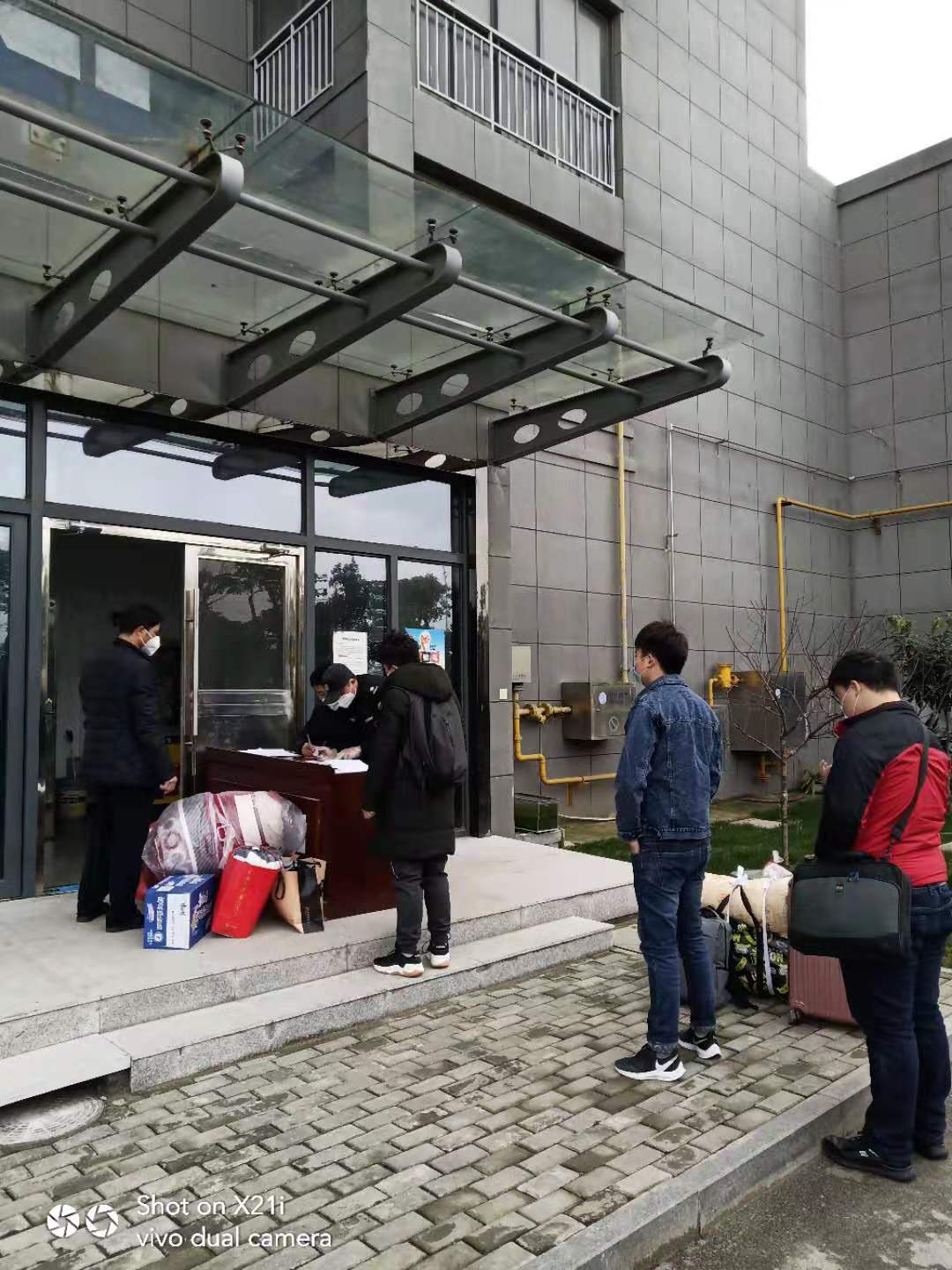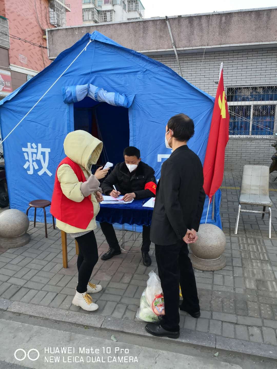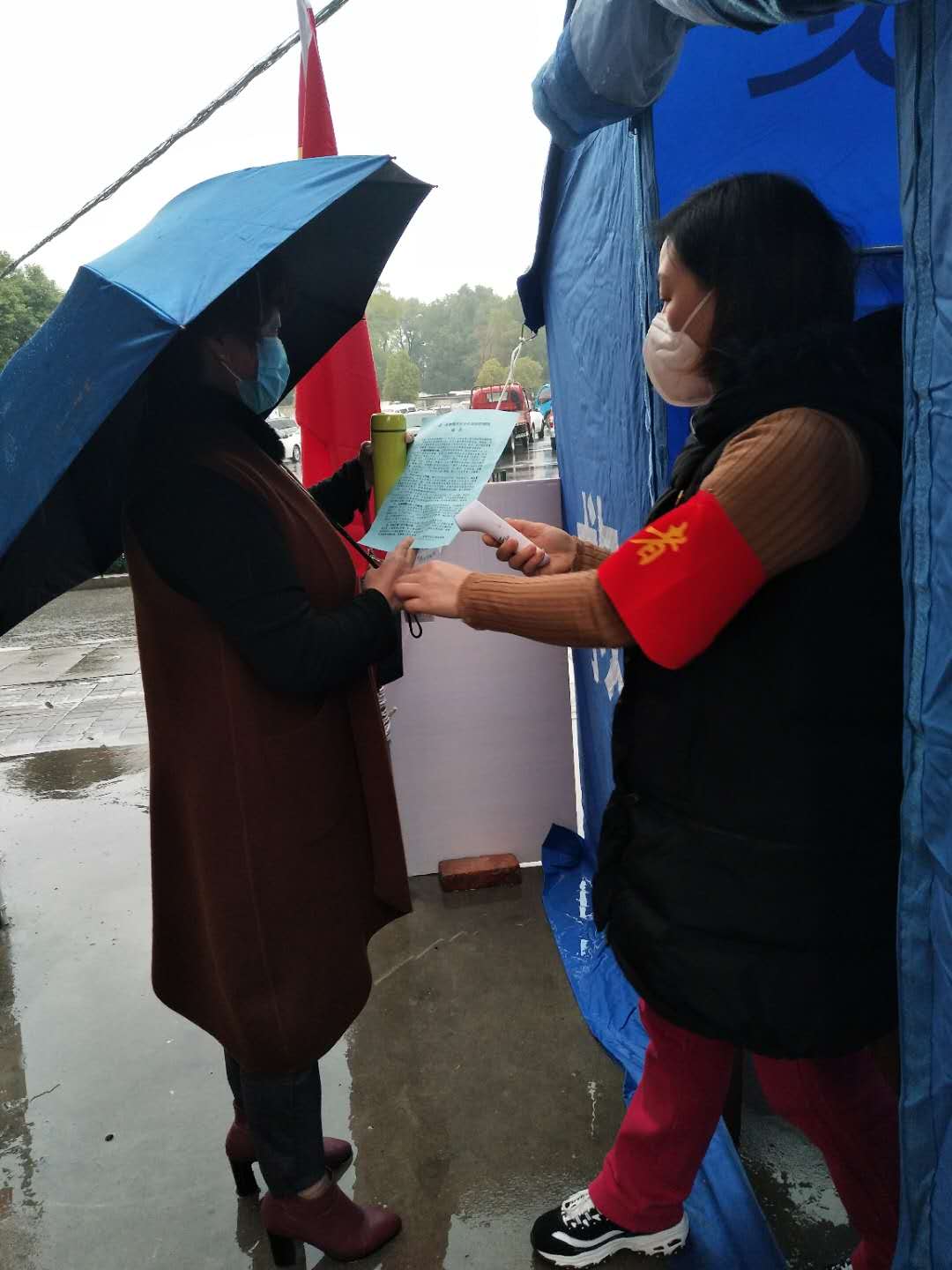 下沉社区的公司员工们给居民发出入证做登记,宣传疫情知识,量体温等